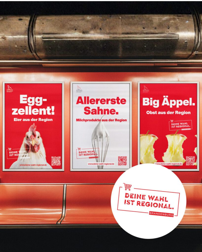 Unsere 360°-Kampagne für die Brandenburger Land- und Ernährungswirtschaft wurde mit dem Deutschen Agenturpreis 2025 in der Kategorie B2C / Plakat ausgezeichnet.